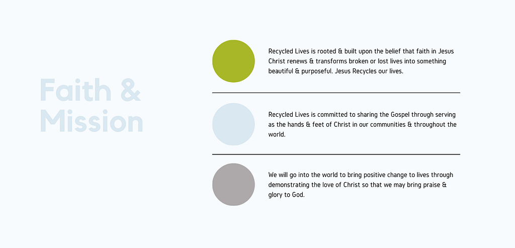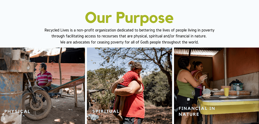 Recycled Lives is a tax exempt 501c3 non-profit Christian organization dedicated to bettering the lives of people living in poverty through facilitating access to resources that are physical, spiritual, and/or financial in nature.